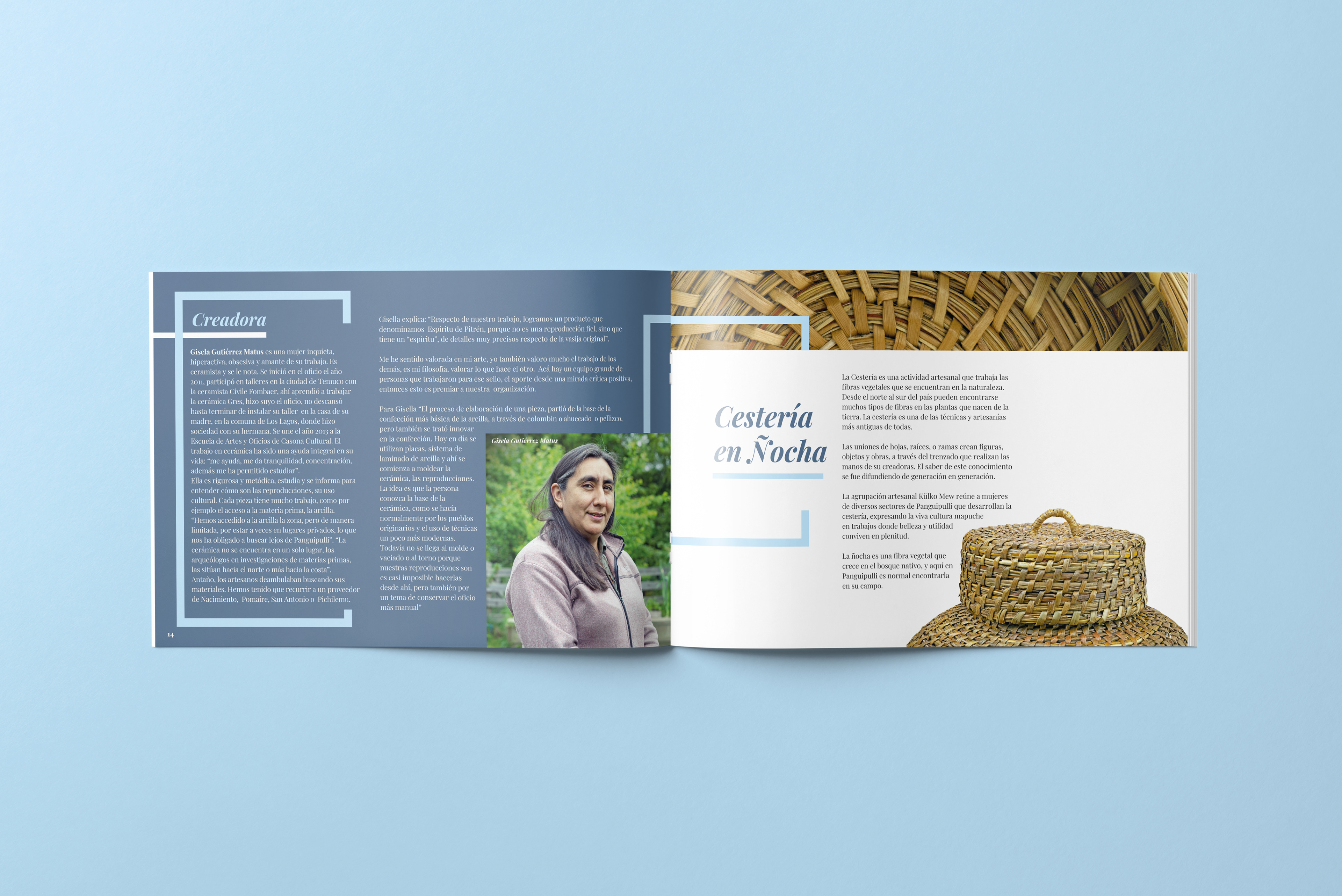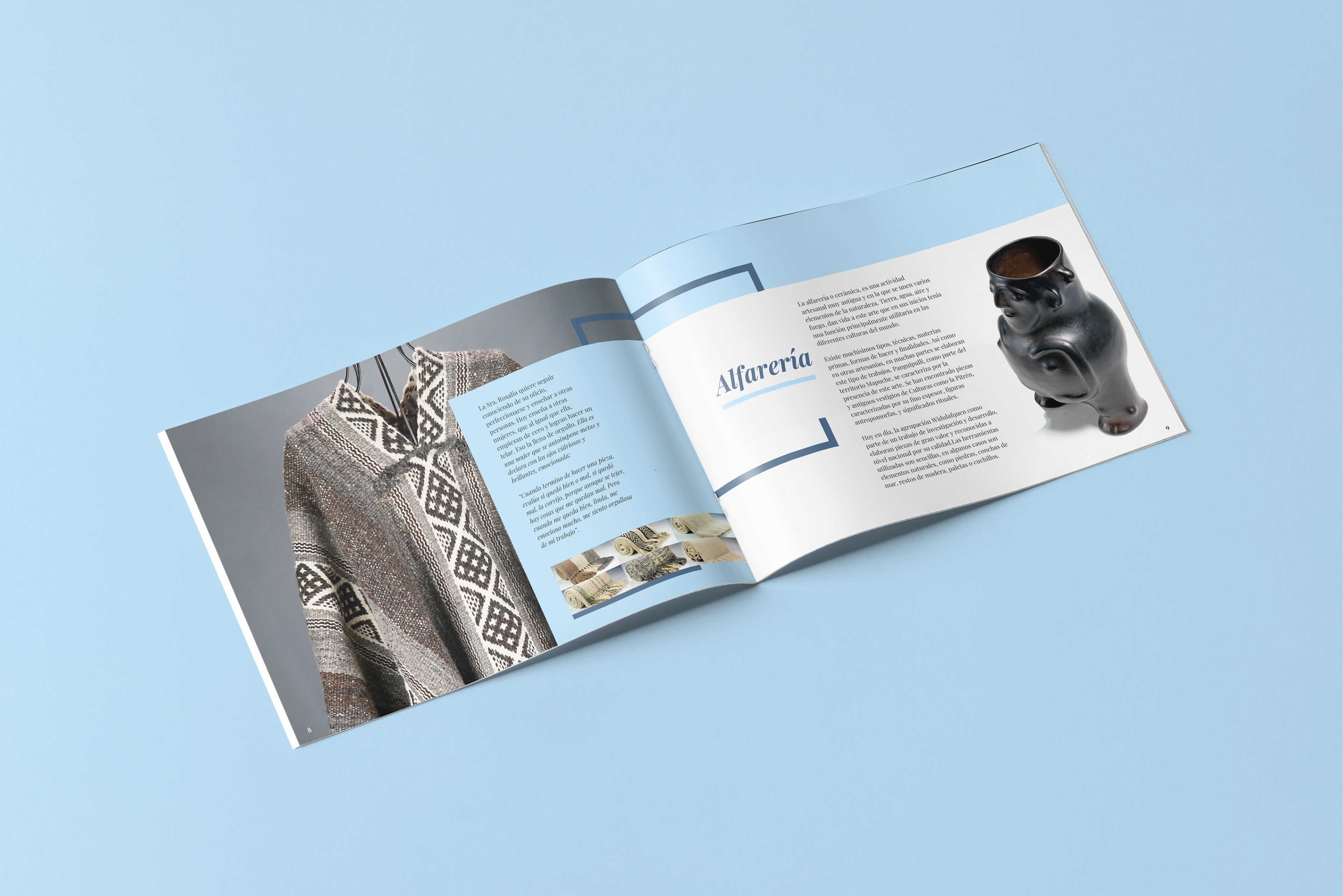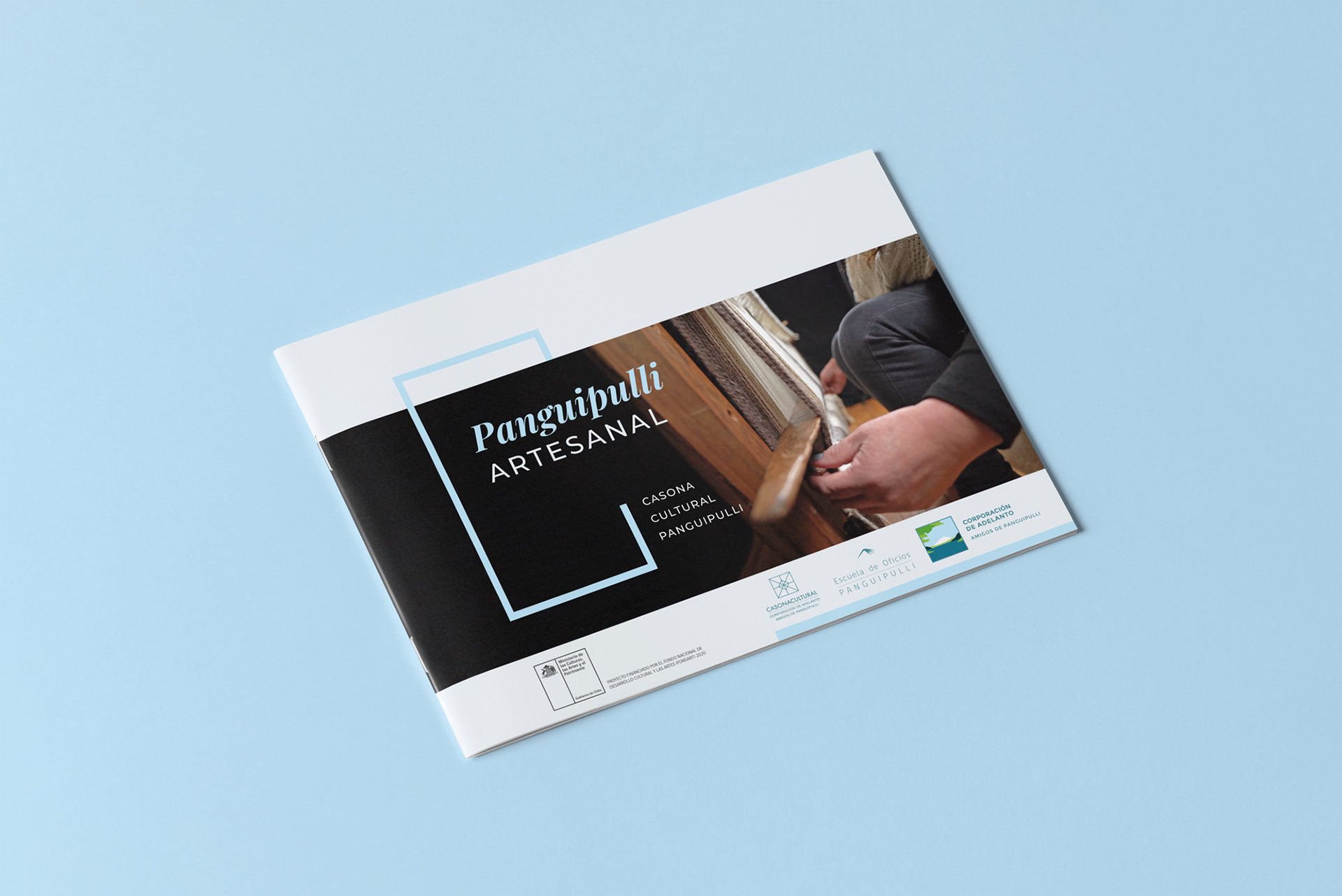 Brochure diseñado para mostrar el trabajo exhibido en la casona cultural de Panguipulli de los artesanos locales.