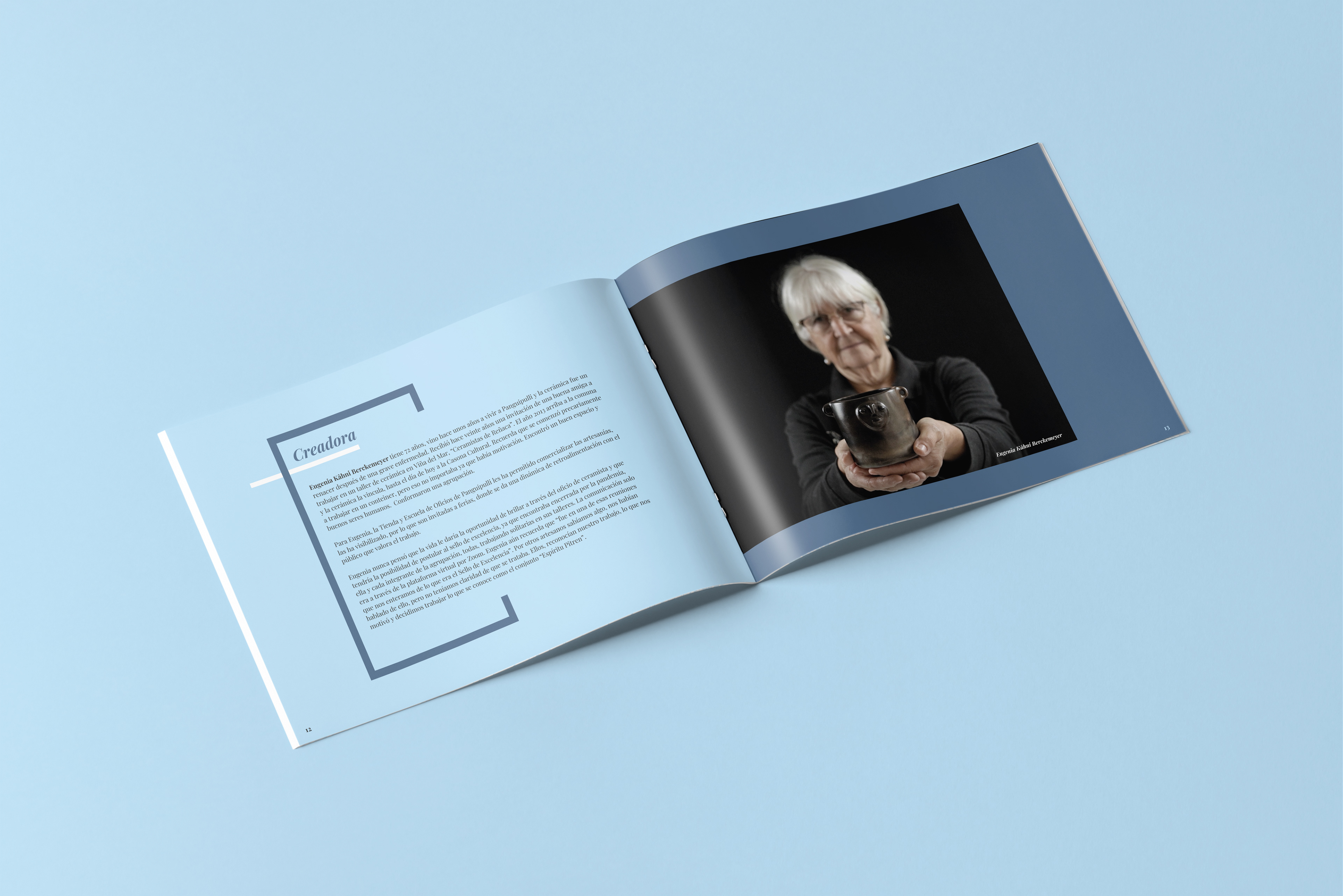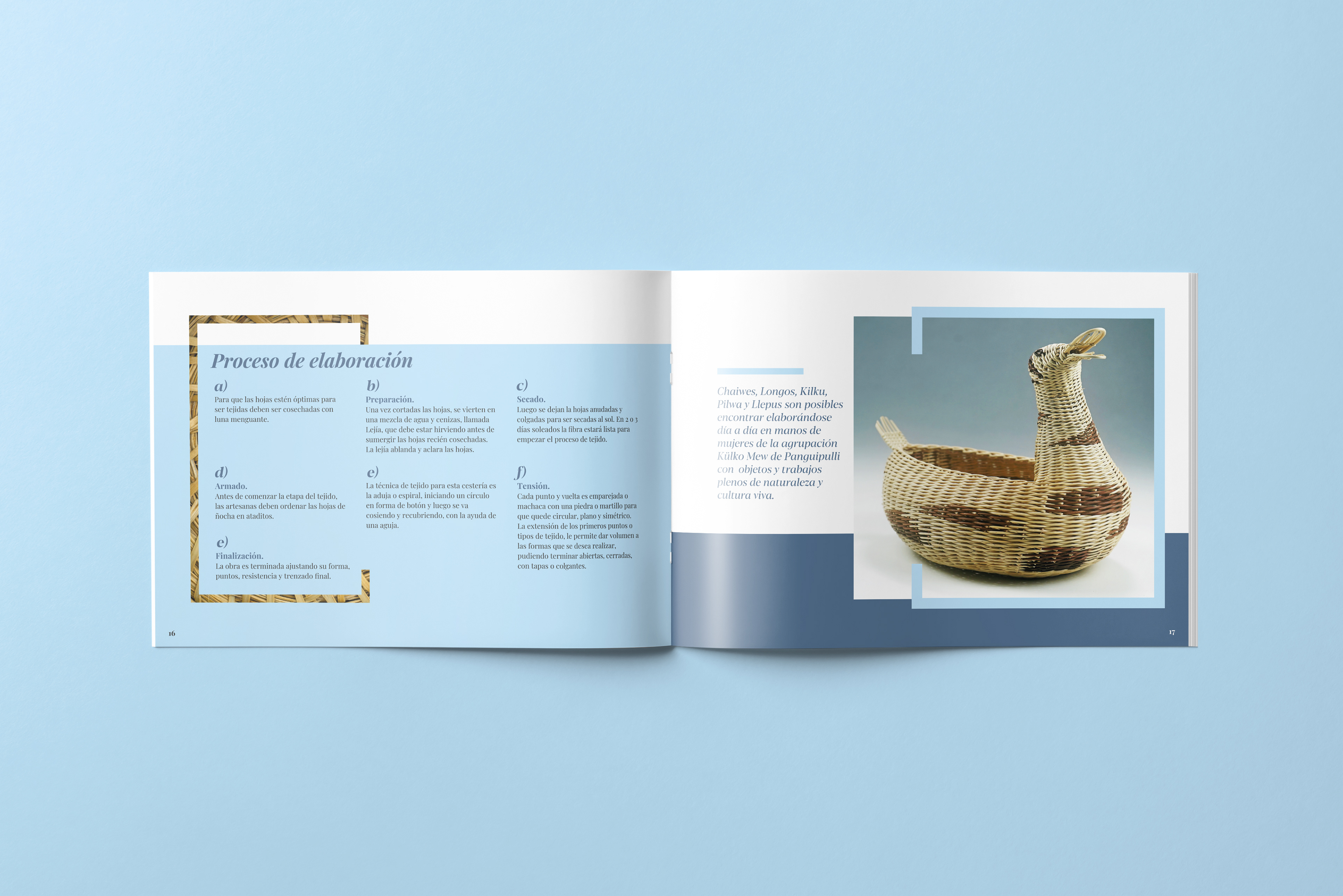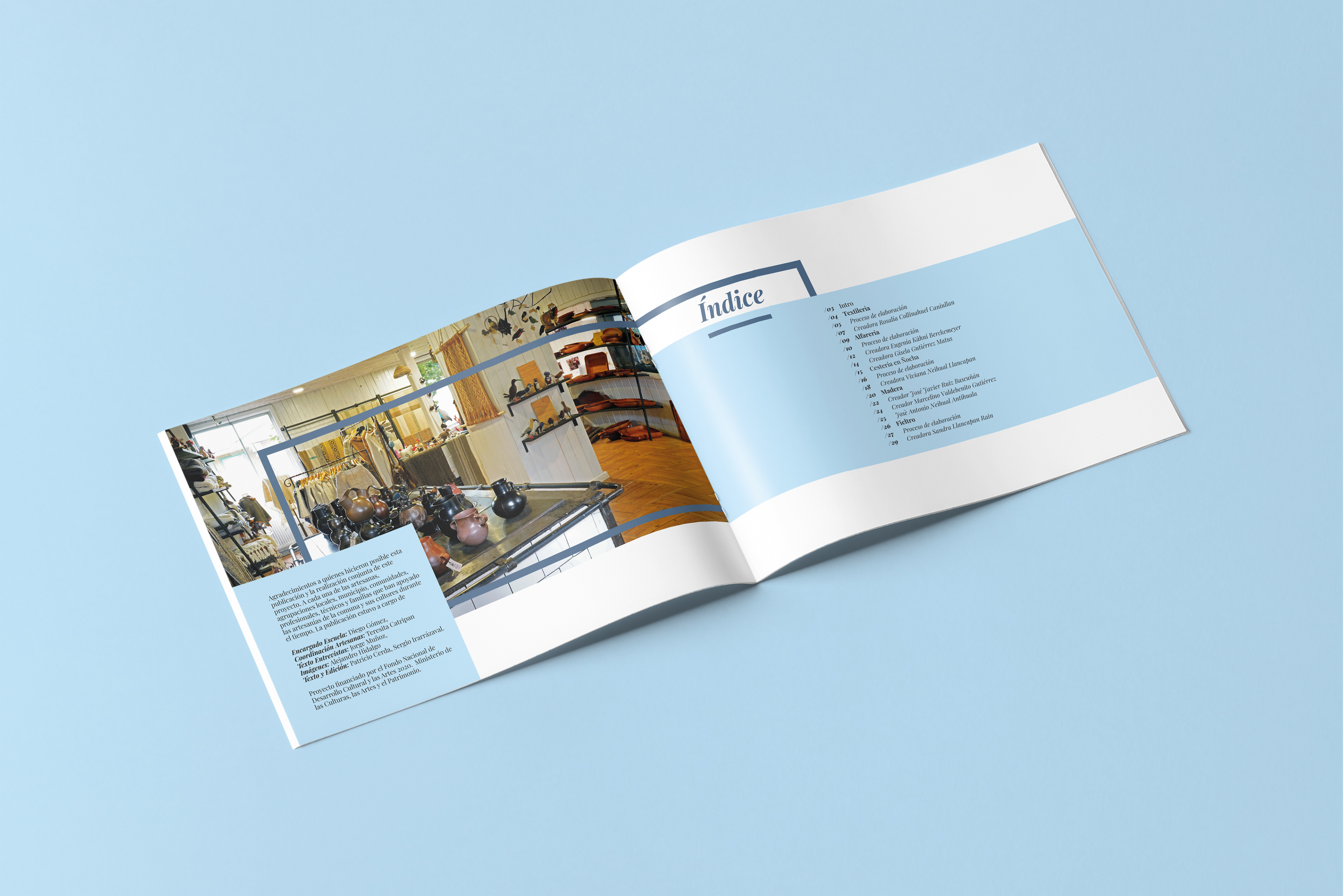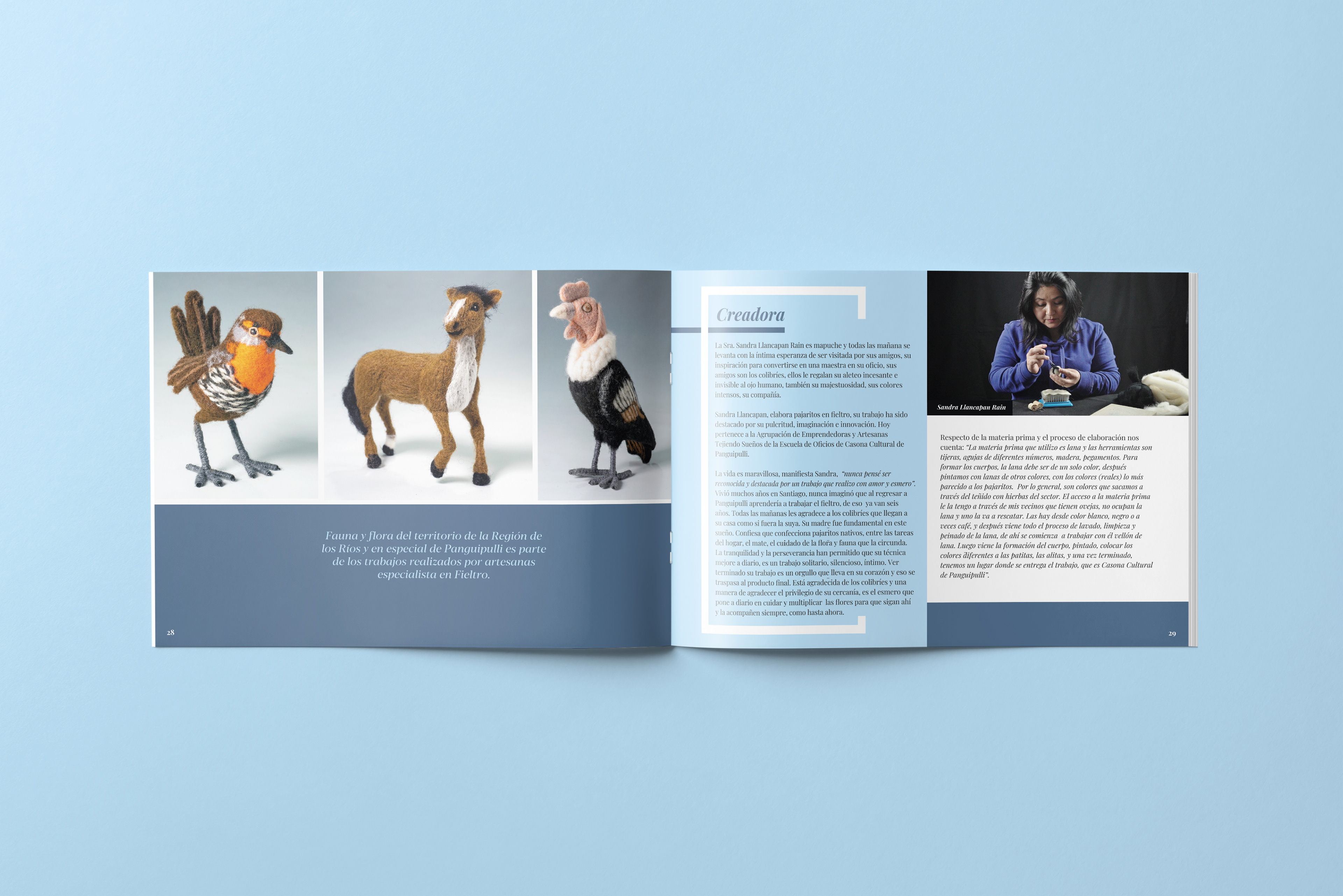Brochure diseñado para mostrar el trabajo exhibido en la casona cultural de Panguipulli de los artesanos locales.