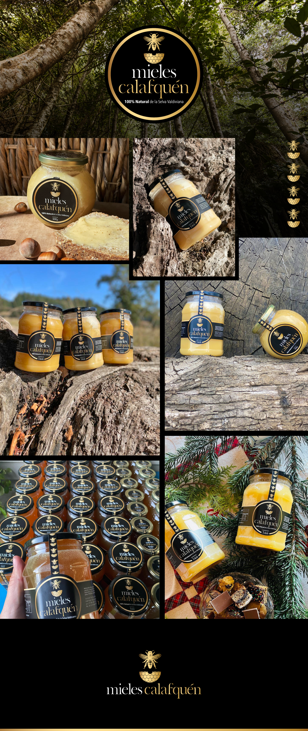 Diseño de marca, envases y adhesivos para una marca de miel 100% artesanal producida en Calafquén, Chile.