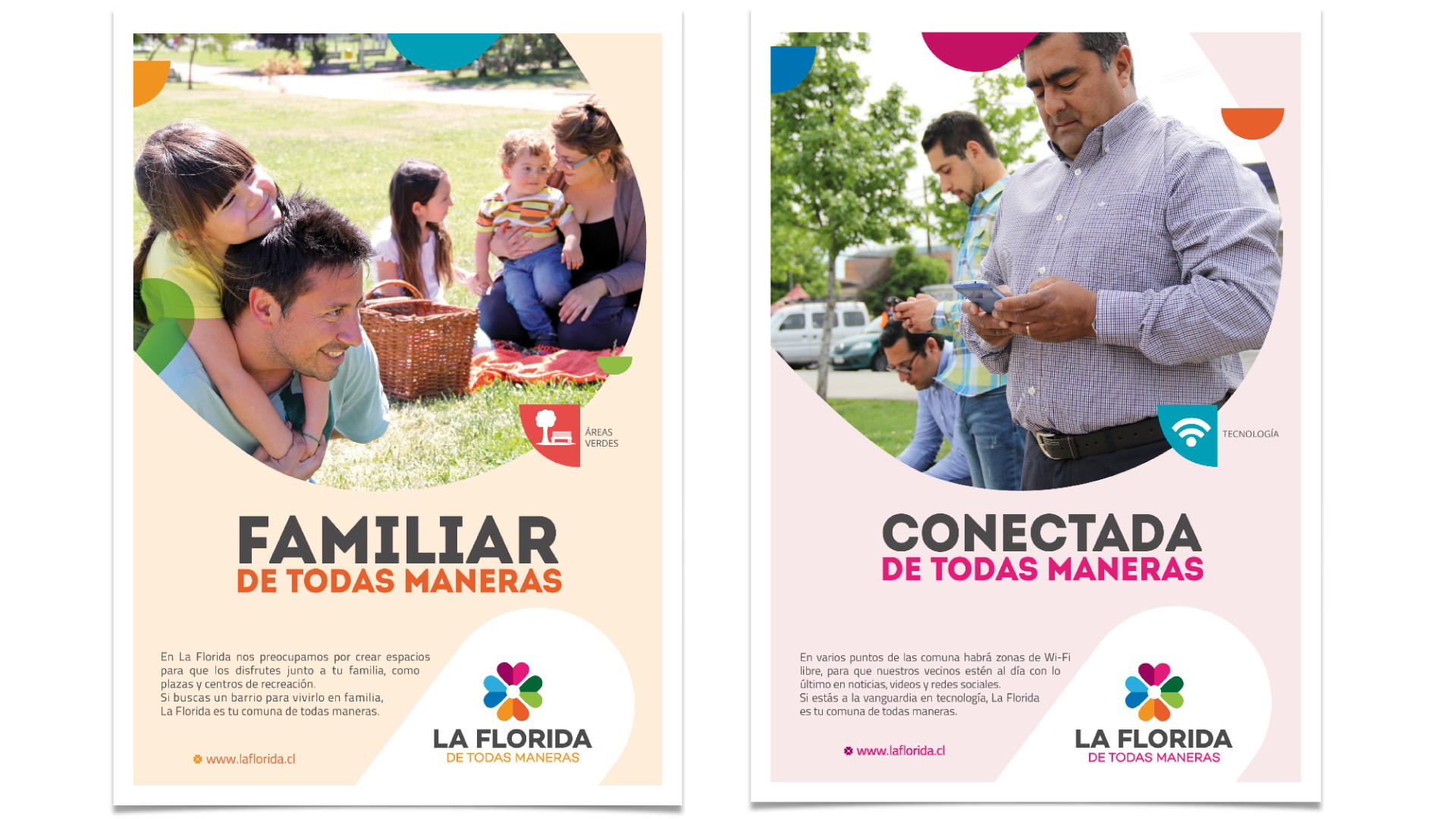 El año 2014 la Municipalidad de La Florida, a través de su alcalde Rodolfo Carter nos encargó el refresh de marca de la comuna junto al concepto que enmarcaría todas las acciones del municipio: De Todas Maneras.