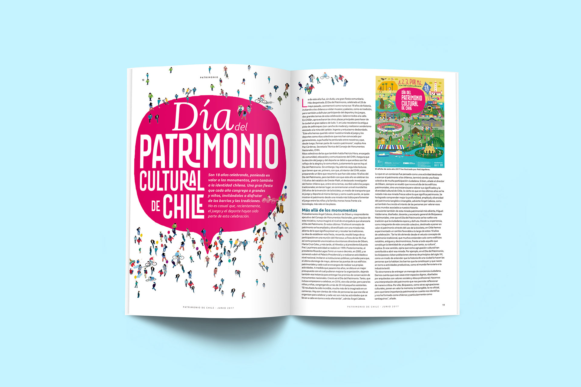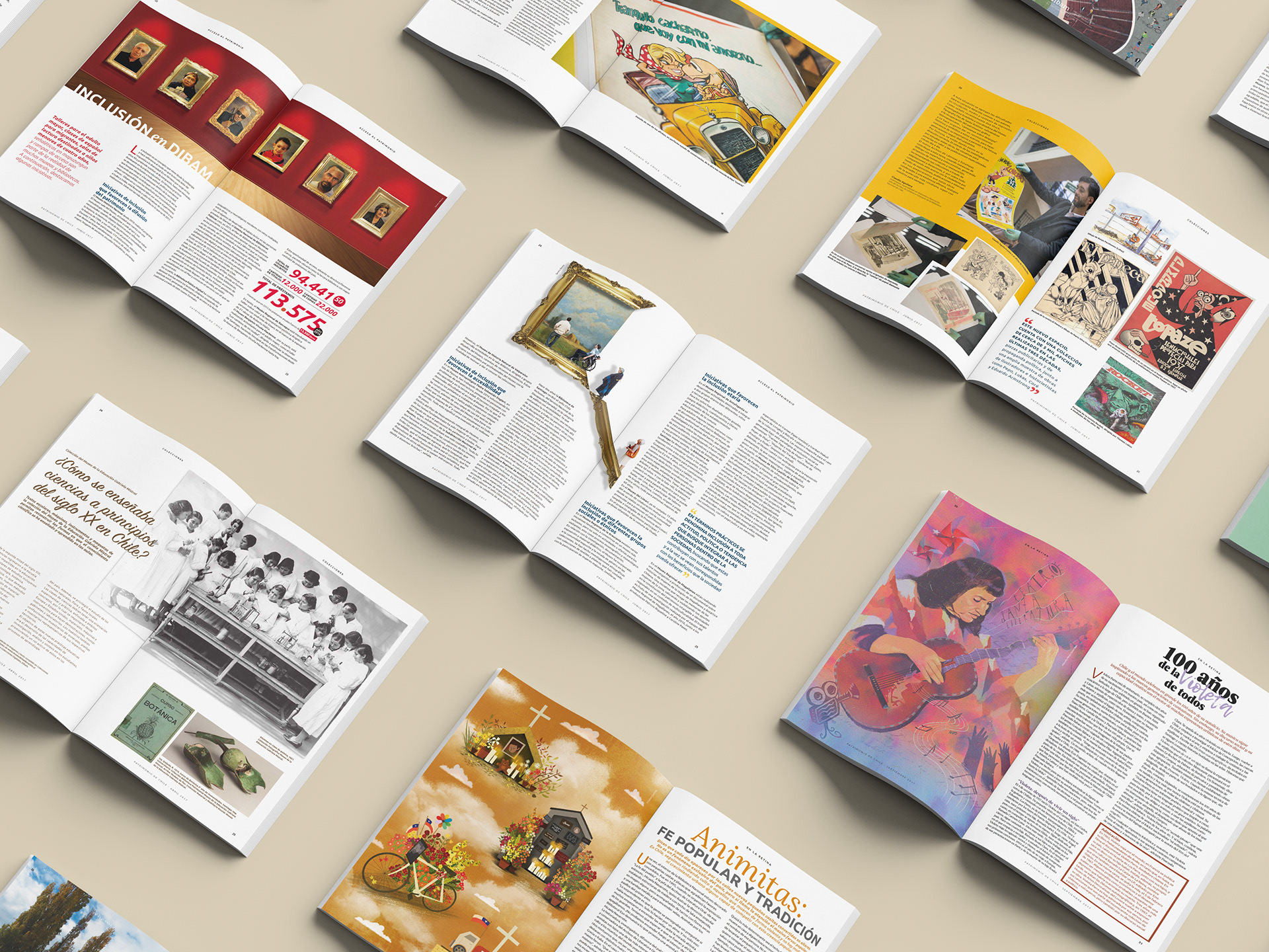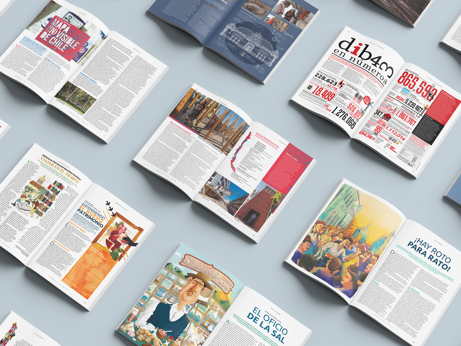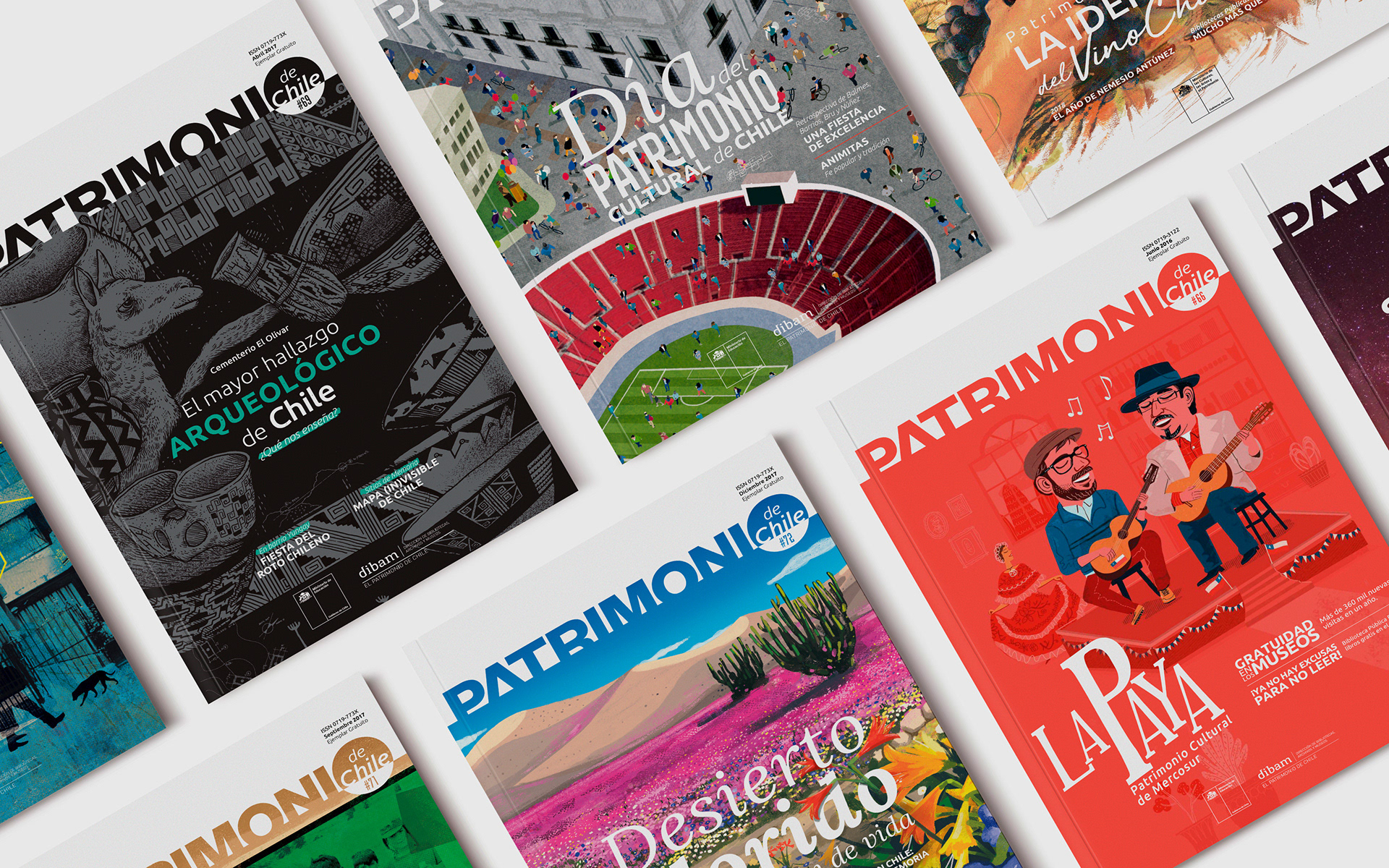 Branding y rediseño de revista del quehacer cultural y patrimonial en Chile. Trabajada en papel 100% reciclado (Cyclus Print) y con la participación en cada edición de ilustradores y fotógrafos nacionales.
